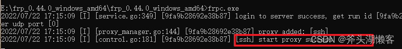 frpc.exe -c frpc.ini # windown上启动客户端