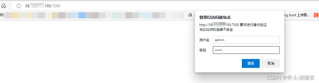 4.# 控制台配置,frp的web管理控制台的用户名和密码,7500是默认端口(所以前面把7500端口提前放开了),可以通过服务端ip+7500端口登录