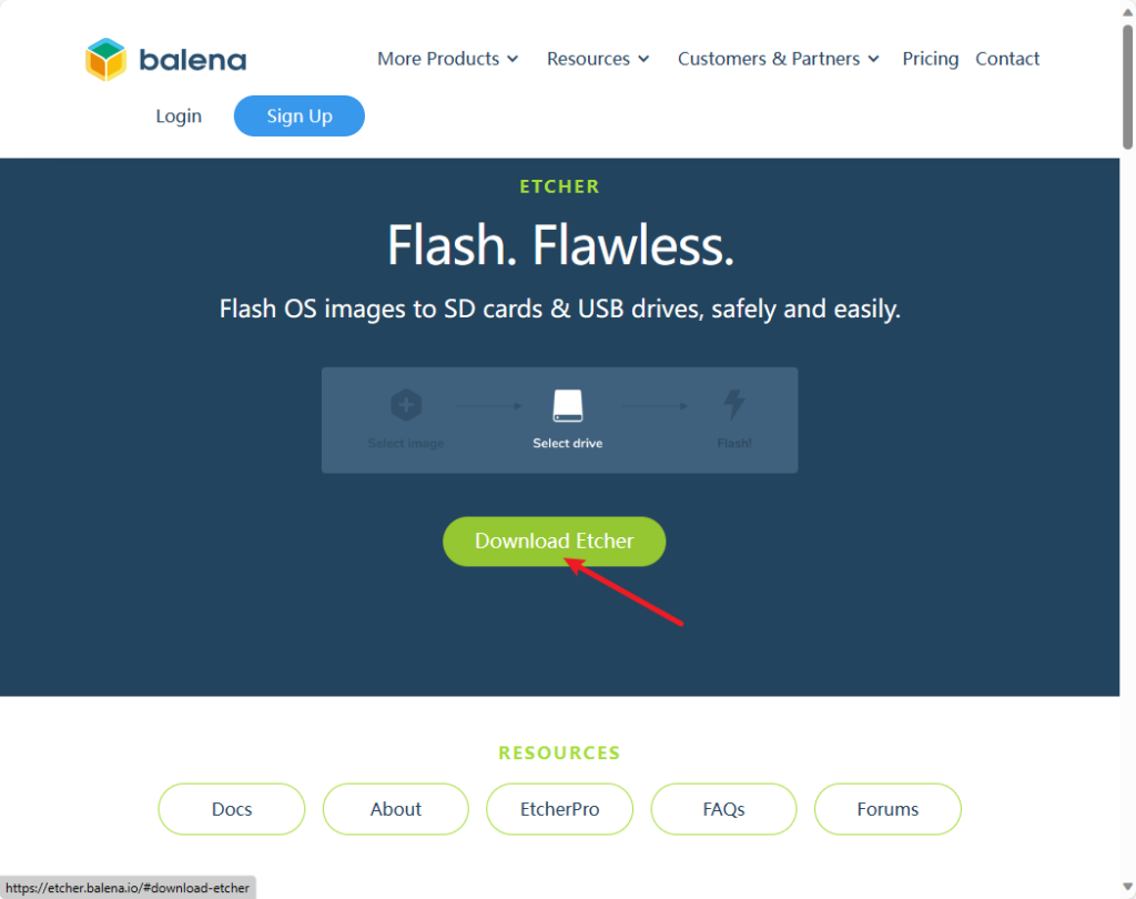 U盘写入工具【balenaEtcher】下载地址:https://etcher.balena.io,点击【Download】进行下载。