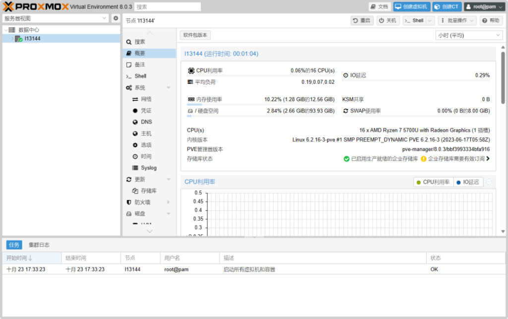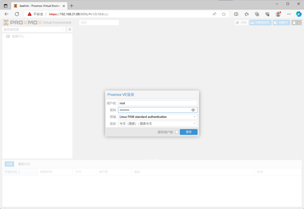 18.到这里已经成功进入到了PVE系统管理界面!说明PVE虚拟机系统已安装成功!